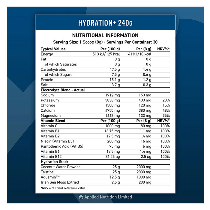 - Ολοκληρωμένη Φόρμουλα Συστατικών:Σε αντίθεση με πολλά προϊόντα που εστιάζουν μόνο σε βασικούς ηλεκτρολύτες, το Applied Nutrition Hydration+ περιέχει ένα σύνθετο μείγμα που περιλαμβάνει: