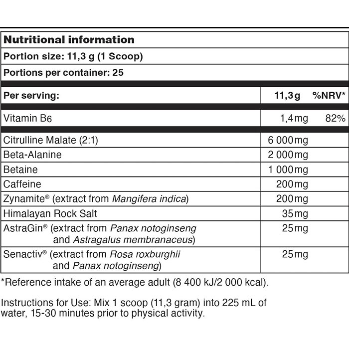 Take 1 serving 15-30 minutes before your workout for increased energy, pump, focus, endurance, and even hydration.