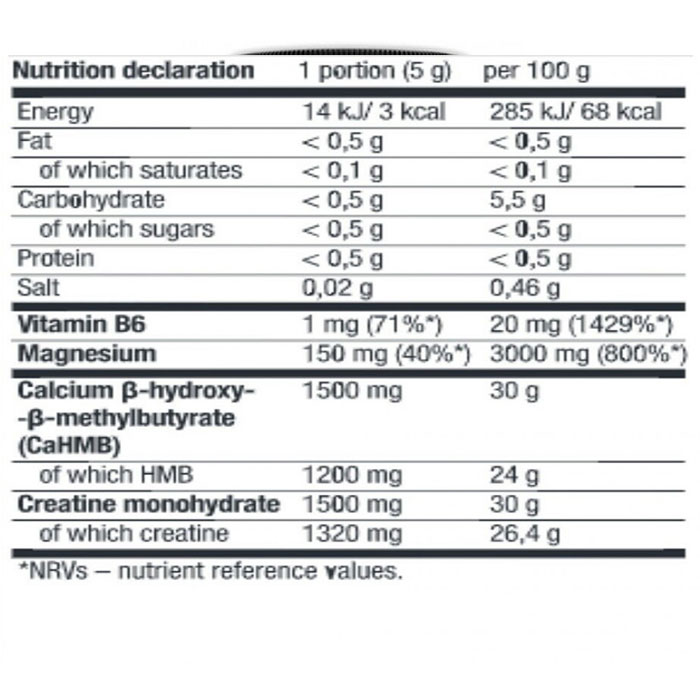 - Support in supplementing your diet with high-quality HMB, creatine, magnesium and vitamin B6