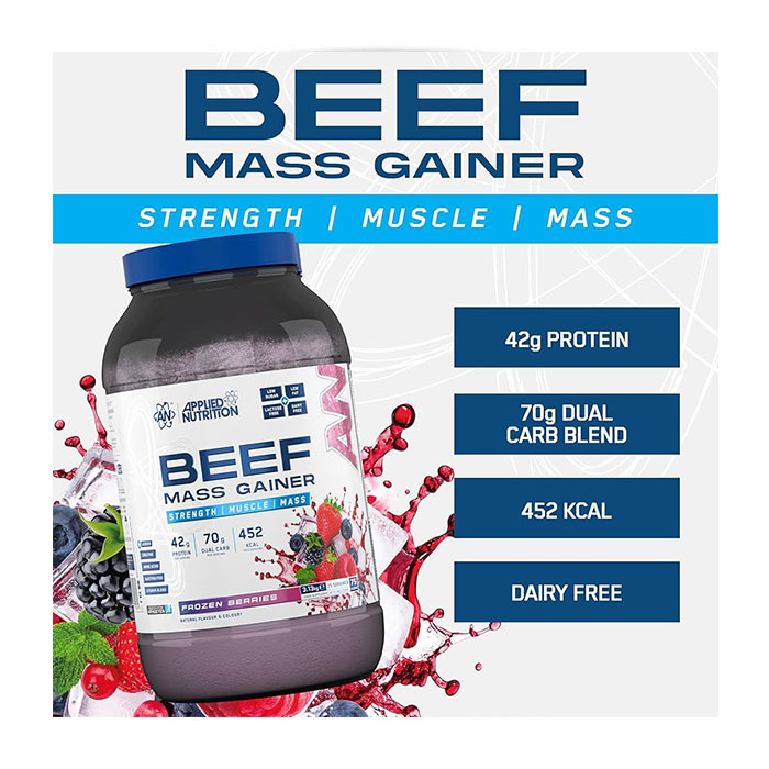 Applied Nutrition Beef Mass Gainer is a High-performance Muscle-building Formula Powered by 100% Pure Beef Protein Isolate. Each Serving Delivers 42g of Protein, a Dual-source Carbohydrate Matrix, and a Precise Blend of Creatine, Amino Acids, Probiotics, and Digestive Enzymes to Fuel Size, Strength, and Recovery. Designed for Athletes Who Demand Results, This Clean, Lactose-free, Gluten-free, and Soy-free Gainer Supports Lean Muscle Growth and Performance. Enhanced With Astragin® for Superior Nutrient Absorption and Probiwin® and Digezyme® for Gut Health and Digestion, Beef Mass Gainer is Your All-in-one Fuel for Mass and Power — No Compromises, Just Results.
